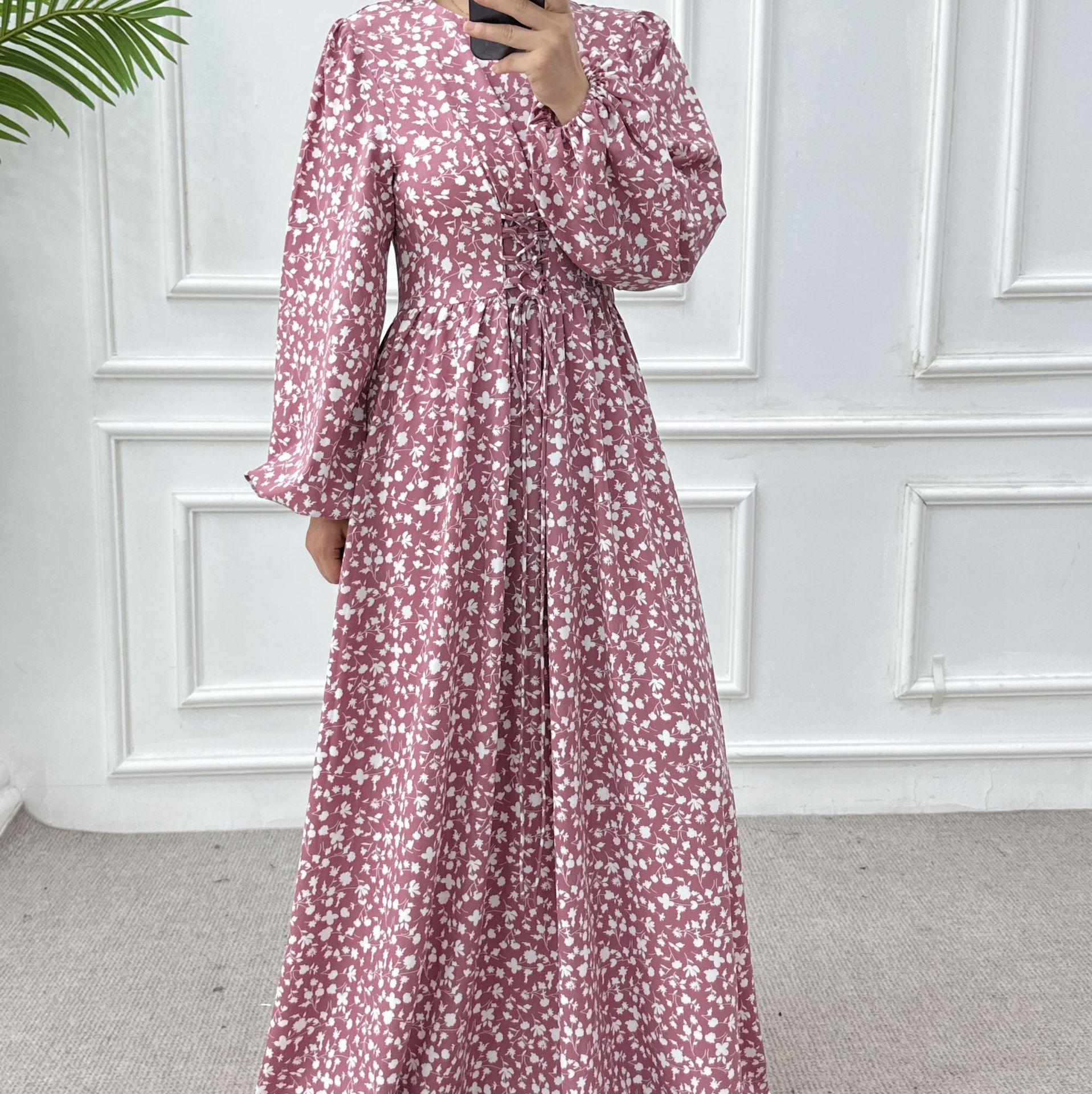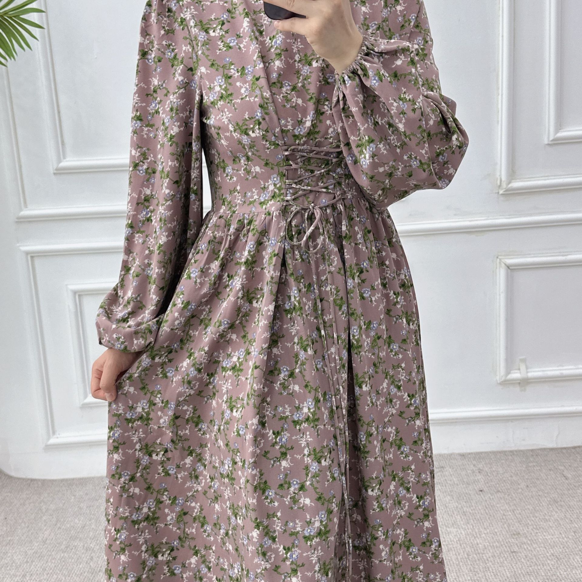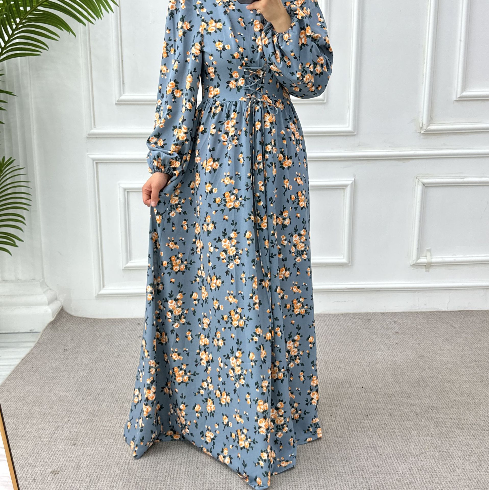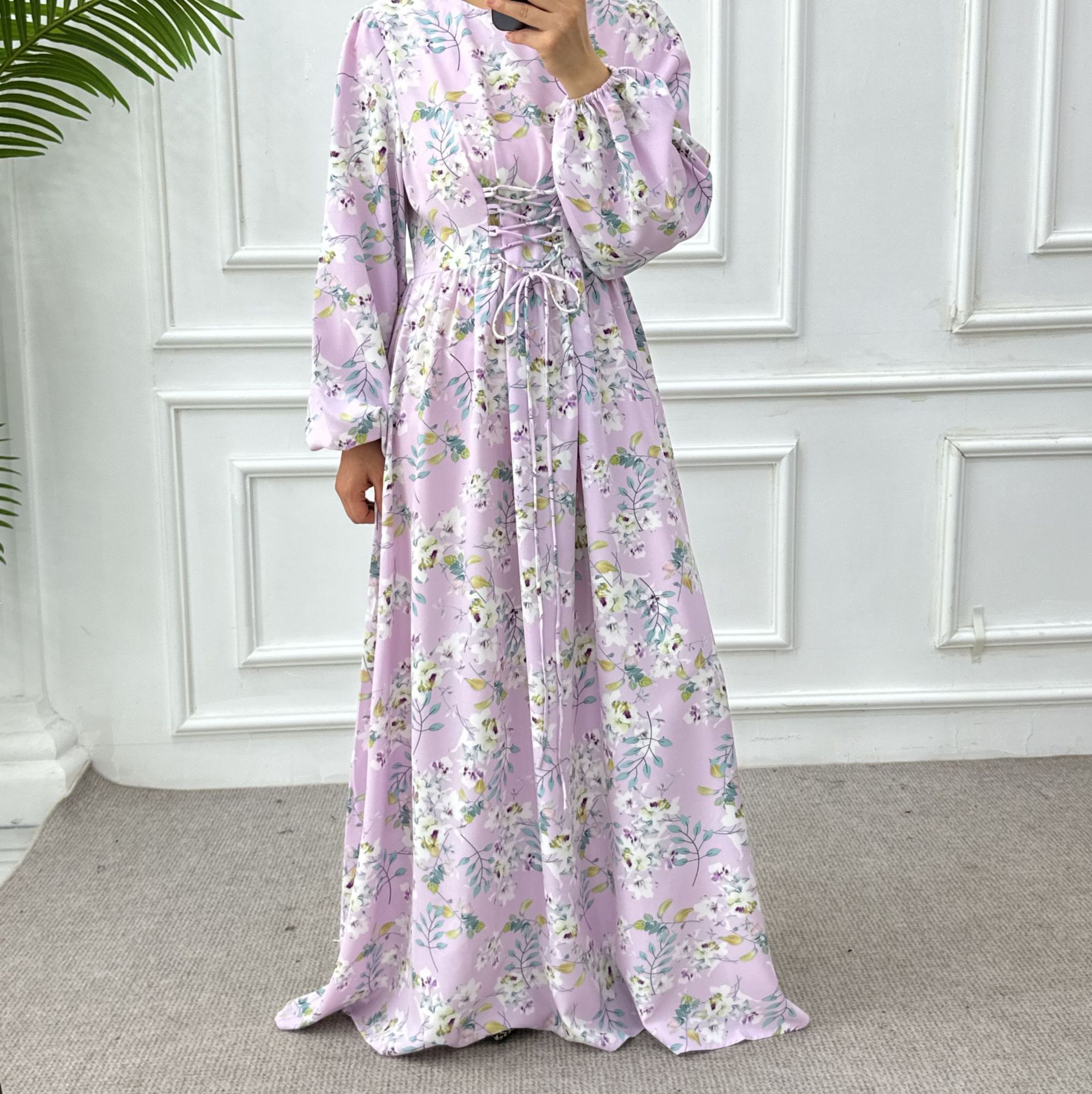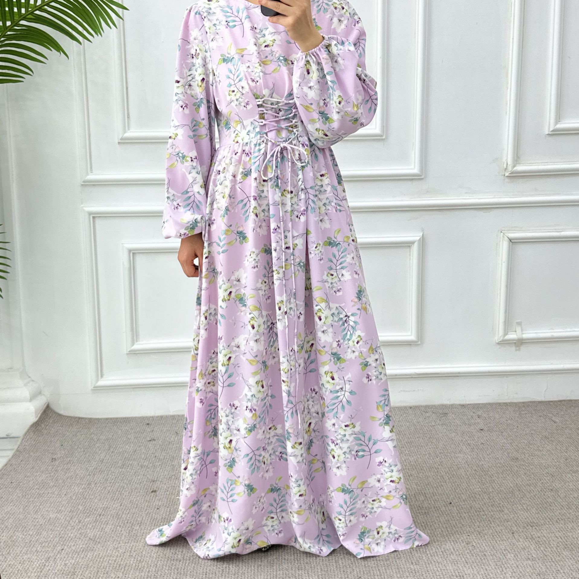 Pure Beauty Print Dress Waist-Cinched Ankle-Length Printed Long Dress Series