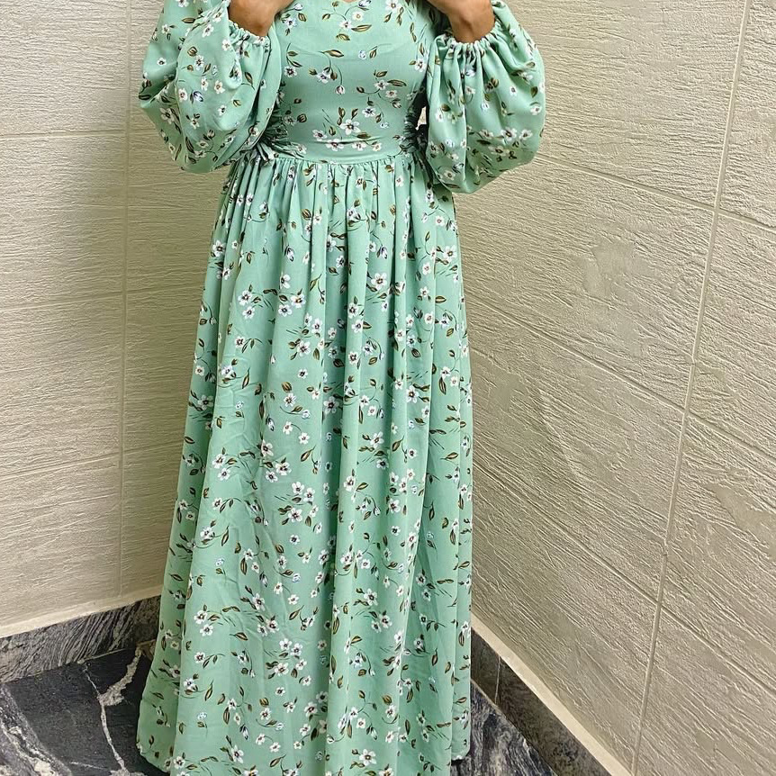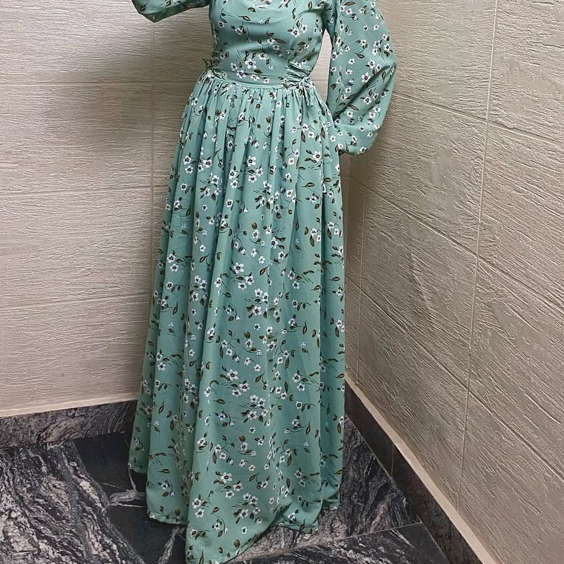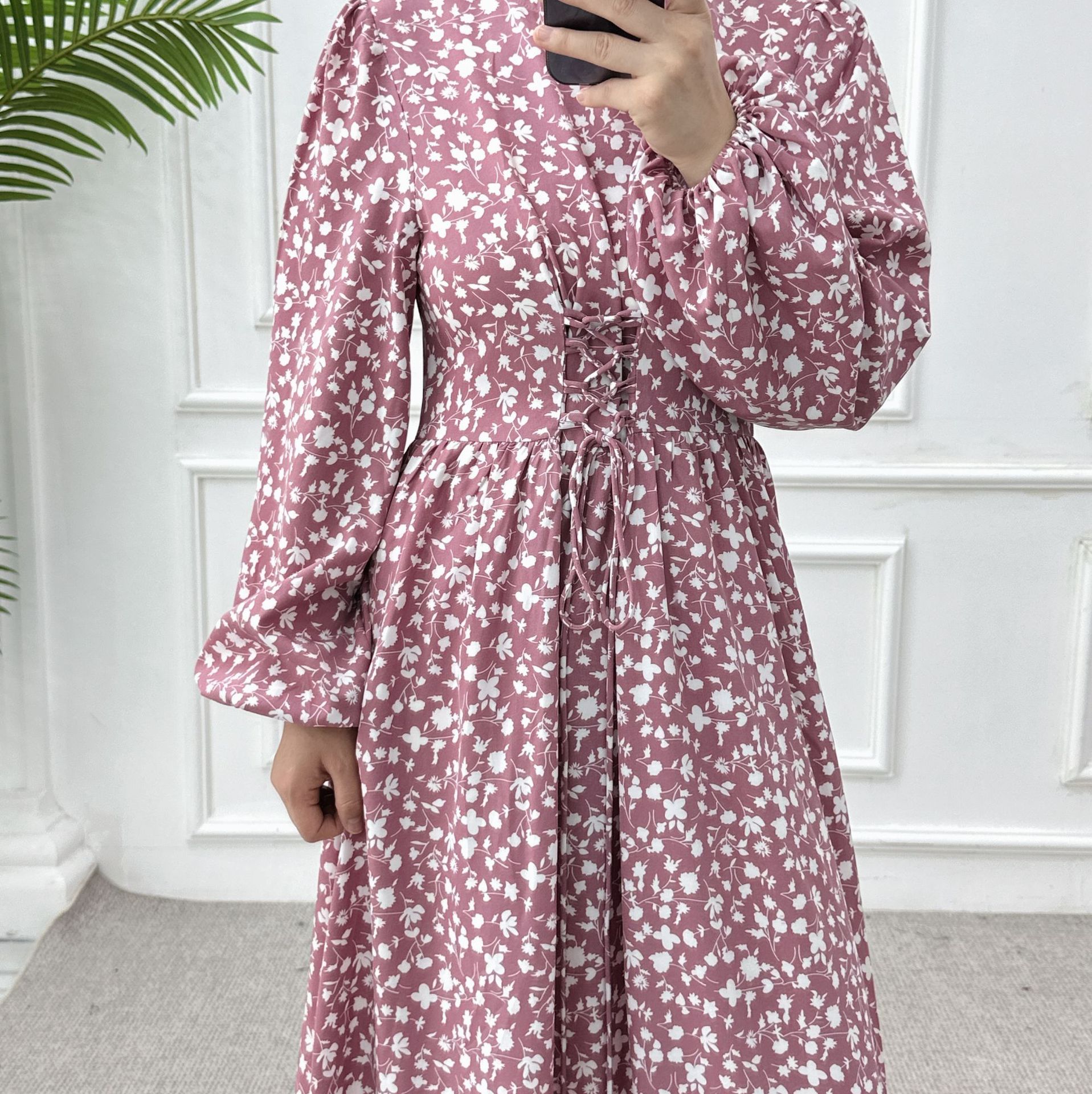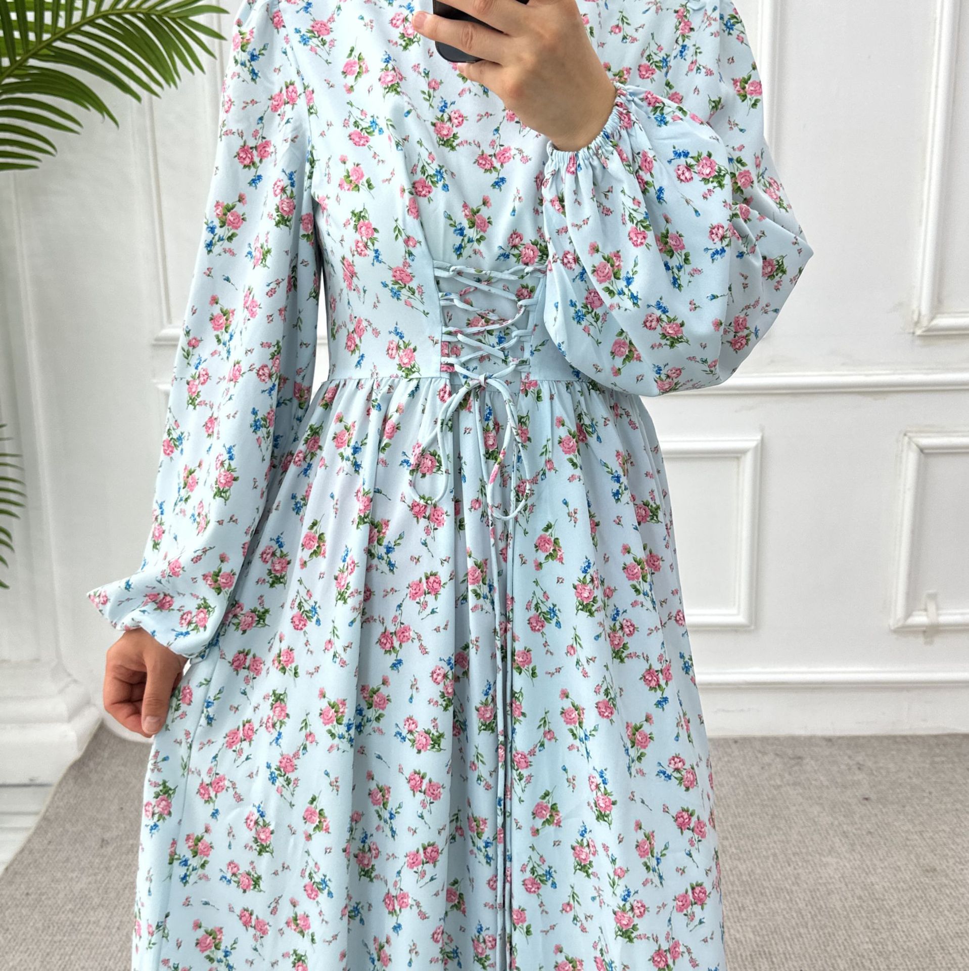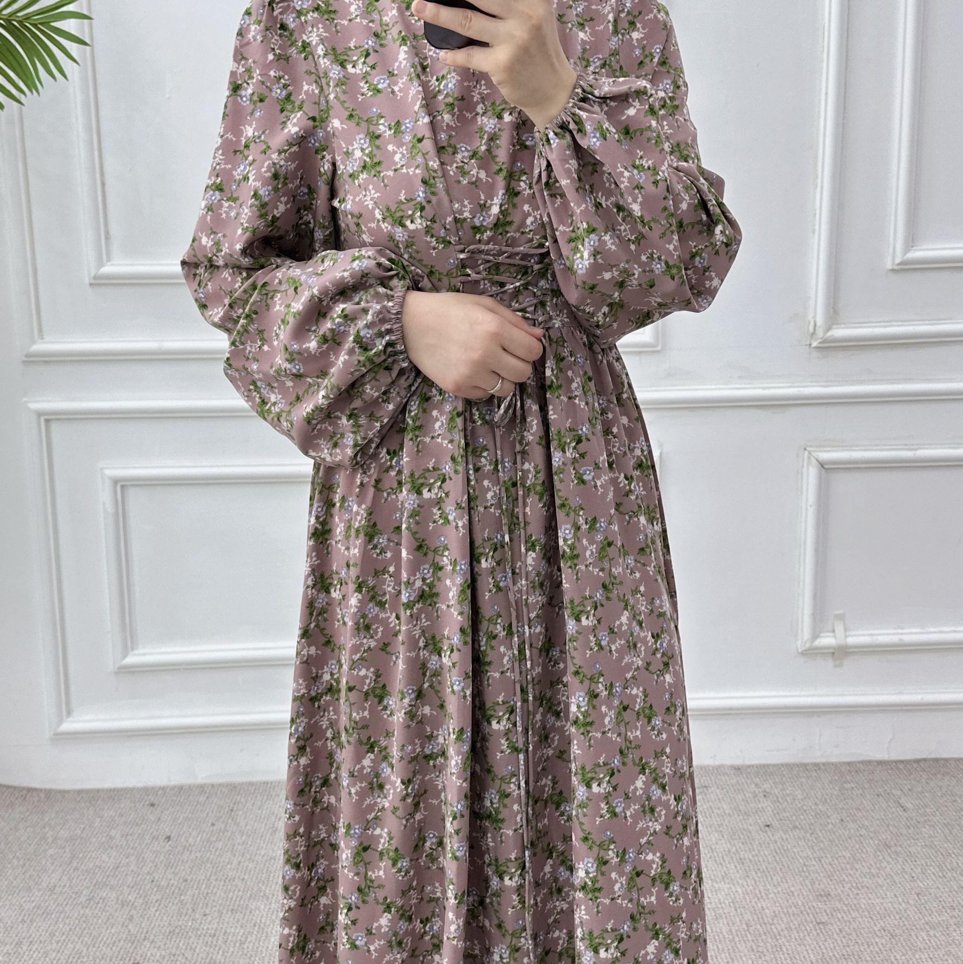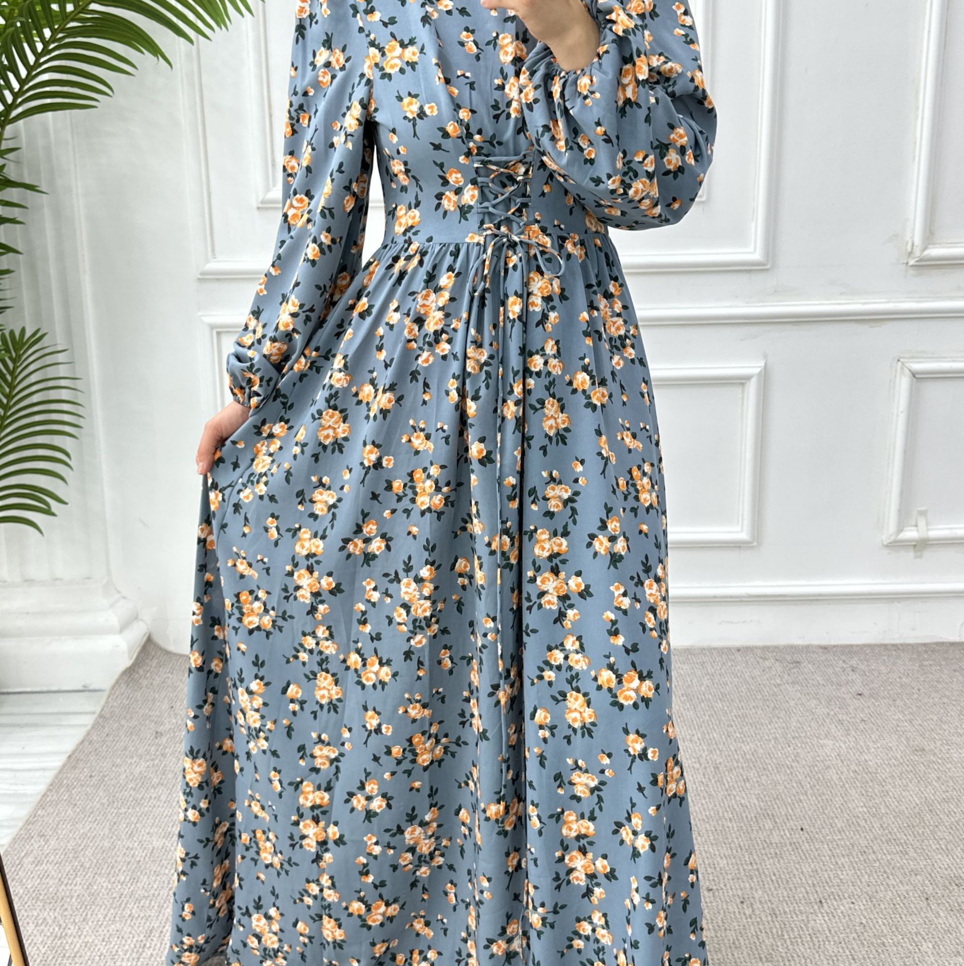 Pure Beauty Print Dress Waist-Cinched Ankle-Length Printed Long Dress Series